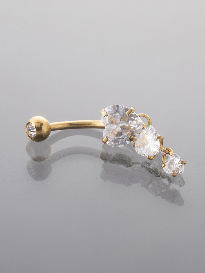 Elegantní piercing do pupíku vyrobený z kvalitní chirurgické oceli zaujme svým jemným leskem a srdíčky s přívěsky se třpytivými krystalky. Lesklý povrch a precizní zpracování dělají z tohoto šperku skvělý doplněk pro každodenní nošení i slavnostní příležitosti. K dispozici ve dvou barvách kovu.