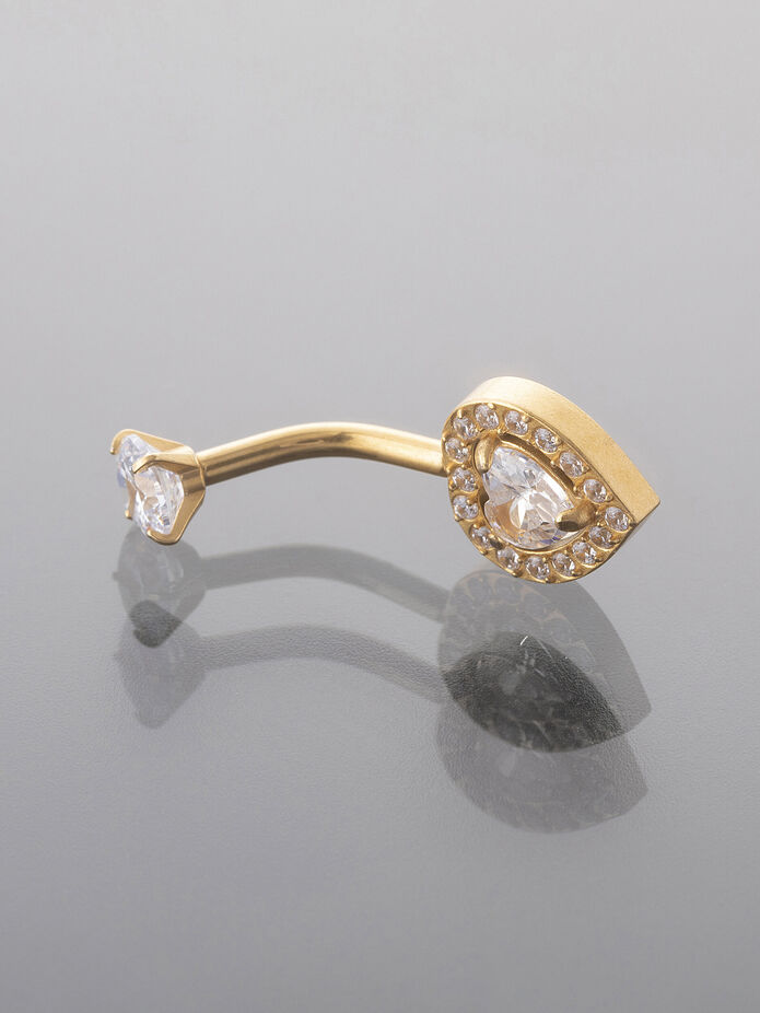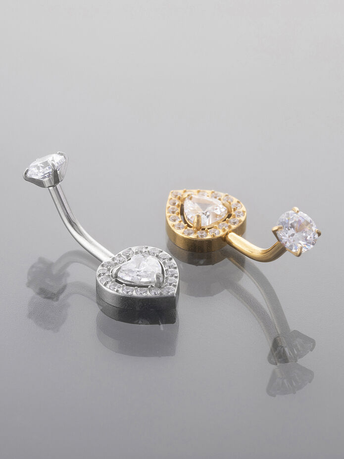 Elegantní piercing do pupíku vyrobený z kvalitní chirurgické oceli zaujme svým jemným leskem a dvěma srdíčky se třpytivými krystalky. Lesklý povrch a precizní zpracování dělají z tohoto šperku skvělý doplněk pro každodenní nošení i slavnostní příležitosti. K dispozici ve dvou barvách kovu.