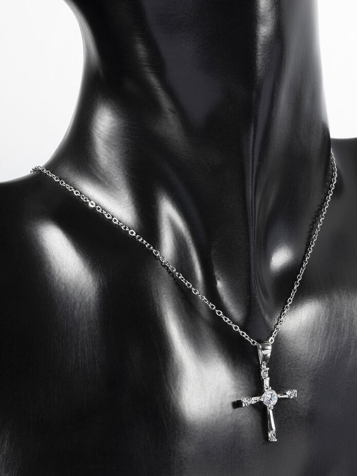 Luxusní náhrdelník z chirurgické oceli s křížkem zdobeným čirým krystalem umístěným uprostřed kříže je skvělým doplňkem k jakémukoliv outfitu.