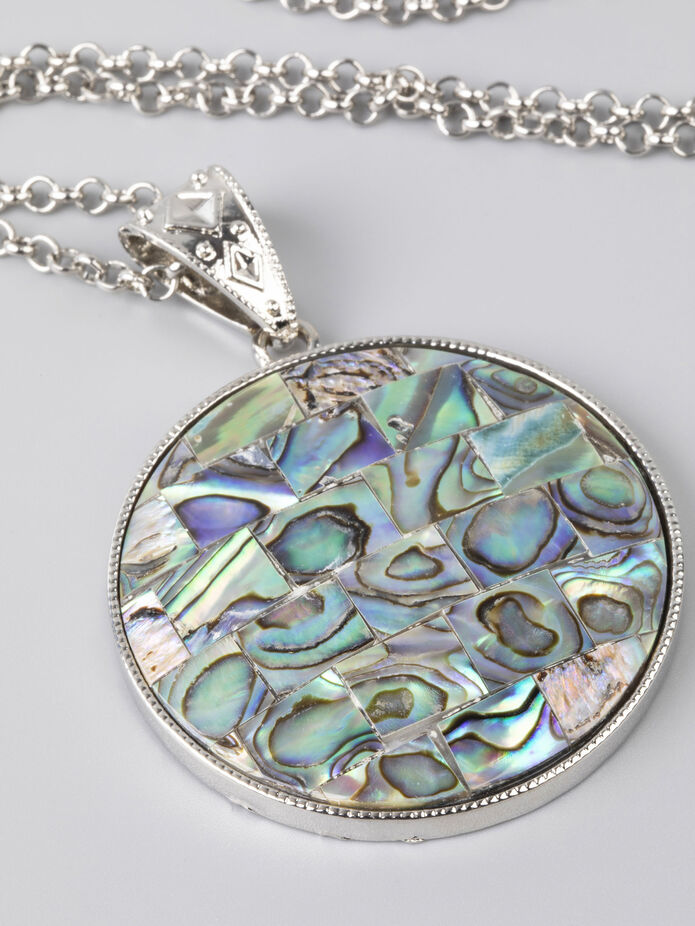 Kouzelný přívěsek tvaru kolečka z přírodní Paua mušle. Tento materiál se považuje za nejbarevnější perleť na světě, neboť opalizuje duhovým efektem. Ze zadu je spínací špendlík a ke šperku je připevněno očko, takže jej lze nosit jako brož i přívěsek. Ozdobte své outfity tímto kouzelným šperkem i vy!