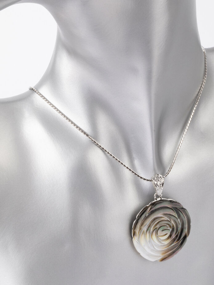 Tento jemný doplňek se krásně hodí k jakémukoliv outfitu. Velký kus paua perleti, která svým odleskem krásně rozzáří každý outfit. Paua mušle se považuje za nejbarevnější perleť na světě, neboť opalizuje duhovým efektem. Přívěsek je upraven do tvaru okvětních lístků, které tvoří krásnou květinu. Udělejte si i vy radost tímto stylovým kouskem!
