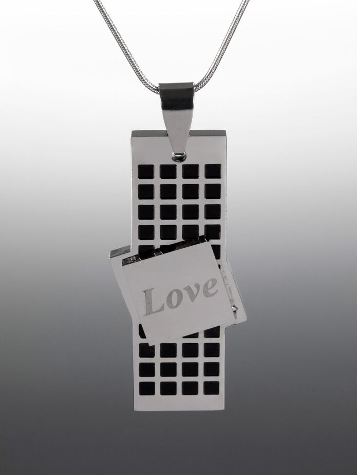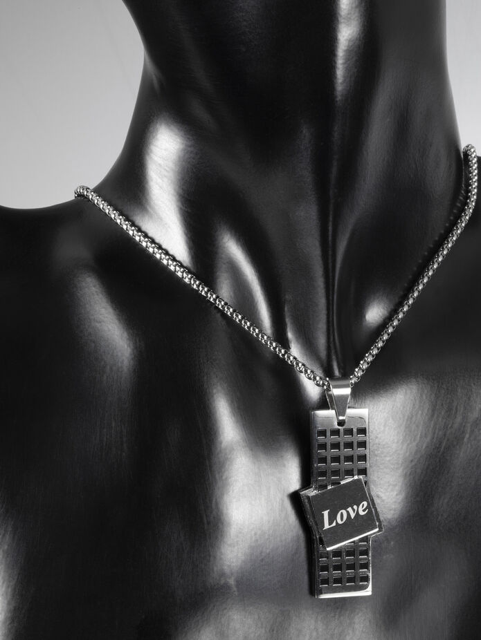 Tento jednoduchý, stylový přívěsek je z chirurgické oceli, která je hypoalergenní a nemění barvu. Přívěsek má podobu obdelníku s jednoduchým vzorem a nápisem love (láska) . Udělejte si i vy radost tímto stylovým doplňkem!