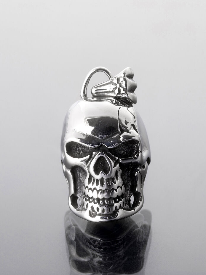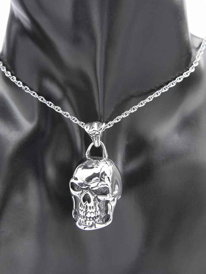 Výrazný masivní přívěsek ve tvaru lebky z leštěné chirurgické oceli.