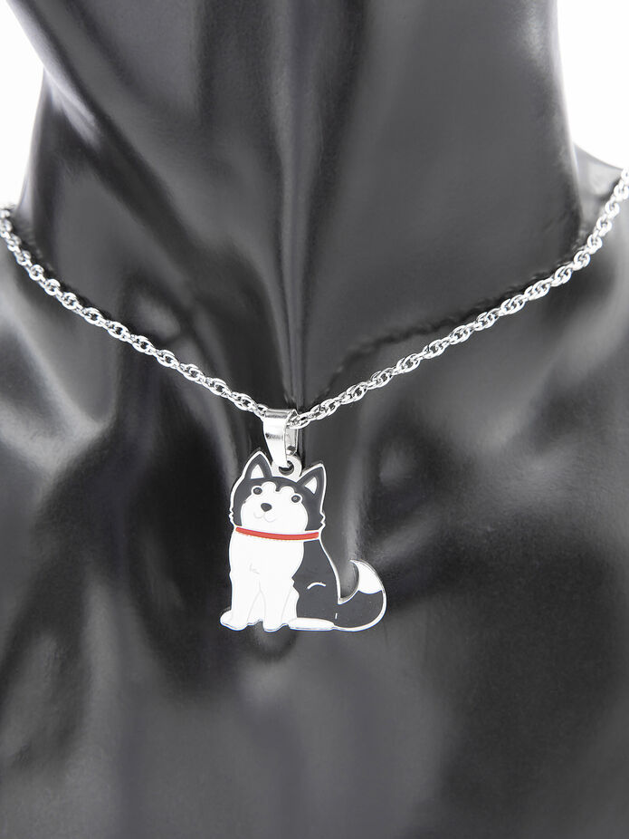 Roztomilý přívěsek ve tvaru pejska je vyroben z kvalitní leštěné chirurgické oceli a zdoben černým a bílým smaltem, který zvýrazňuje jemné detaily.