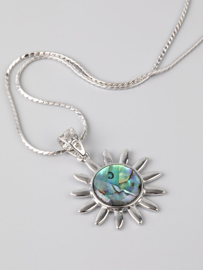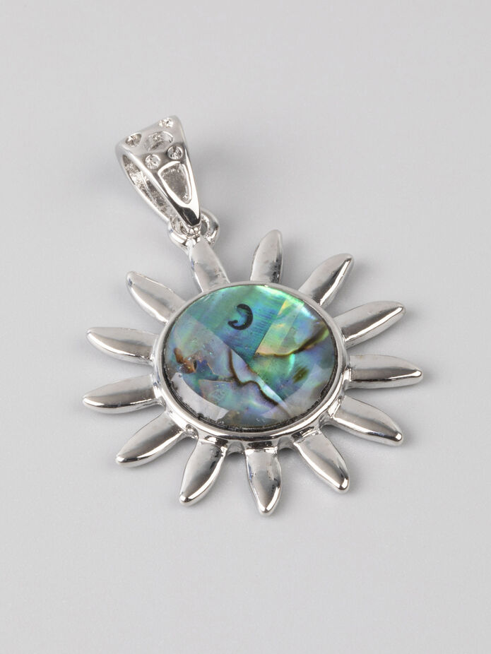 Tento přívěsek ve tvaru slunce je z přírodní Paua mušle. Tento materiál se považuje za nejbarevnější perleť na světě, neboť opalizuje duhovým efektem. Přívěsek má rozměry 4x3 cm. Udělejte si radost a doplňte svůj outfit tímto kouzelným přívěskem plným barev!