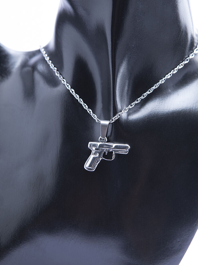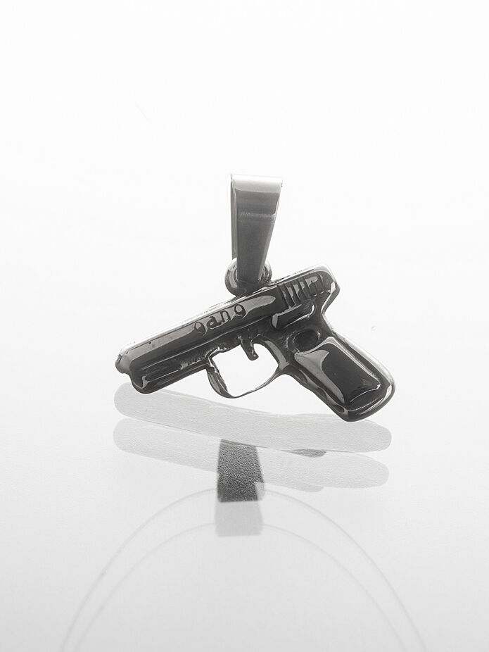 Stylový přívěsek z chirurgické oceli ve tvaru palné zbraně.