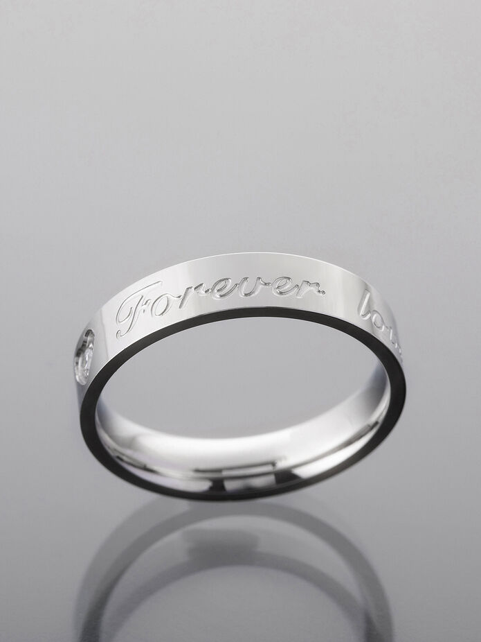 Elegantní lesklý prsten se vrytým nápisem „Forever love“ a drobným krystalem ve tvaru srdíčka. Decentní, stylový a s nádechem romantiky – pro muže i ženy se smyslem pro detail.