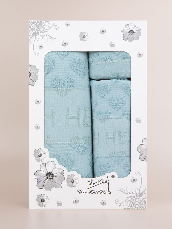 Sada 3 ručníků různých velikostí. Tato krásná sada má design se srdíčky a nápisem a je na výběr v několika barevných variantách. Sada obsahuje osušku, ručník na ruce nebo vlasy a menší ručník na obličej. Materiál, ze kterého jsou ručníky vyrobeny, je krásně hebký a dobře absorbuje vlhkost, přitom rychle schne a drží svojí barvu. Ručníky doporučujeme prát při 40 °C.