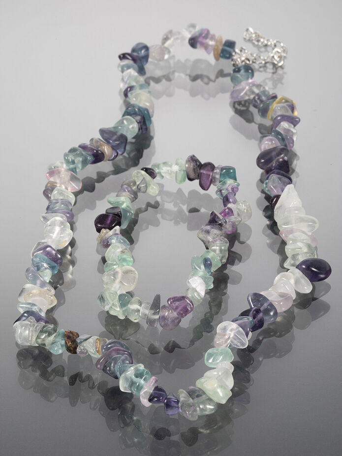 Krásná sada náramku a náhrdelníku z fluoritu. Sada je ze sekaných kousků barevného fluoritu, který stylově oživí každý váš outfit!