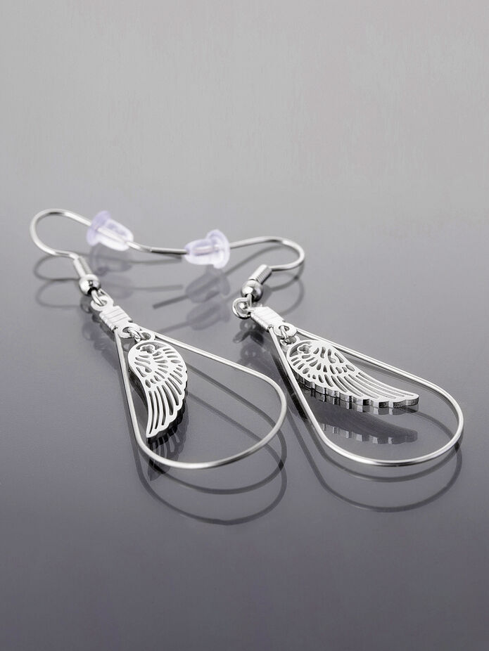 Stylové náušnice ve tvaru kapky s peříčkem – chirurgická ocel