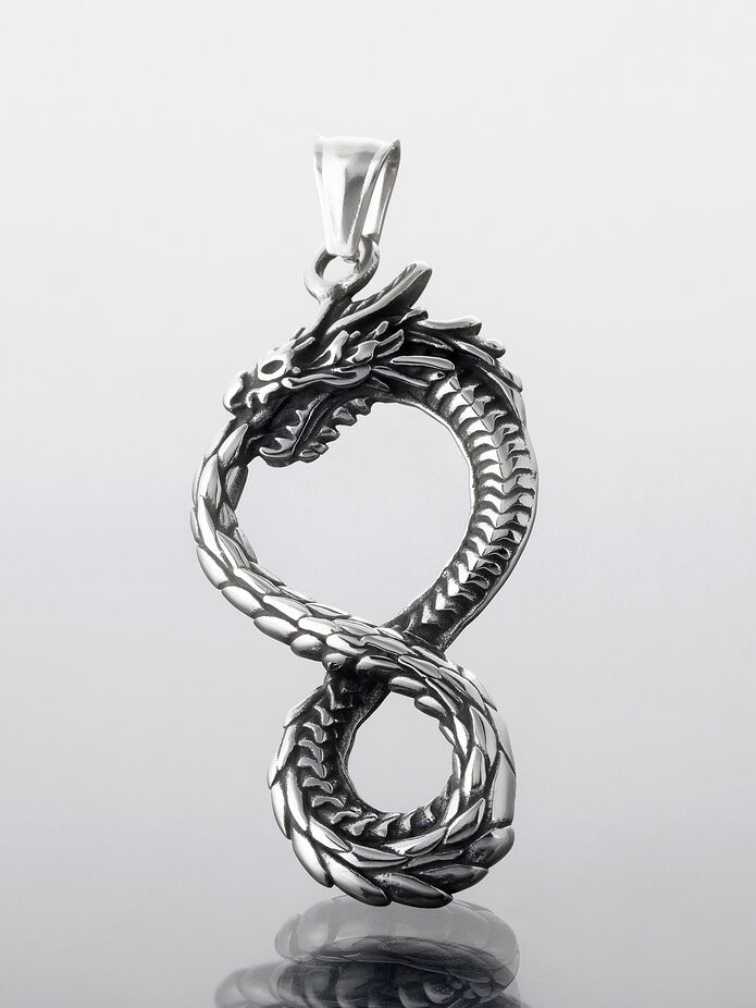 Stylový nápadný přívěsek ve tvaru čínského draka je vyroben z kvalitní leštěné chirurgické oceli, má dokonale propracované detaily. Čínský drak symbolizuje sílu, odvahu, statečnost a vytrvalost. Je uctíván jako ochránce, rádce a strážce tajemství.
