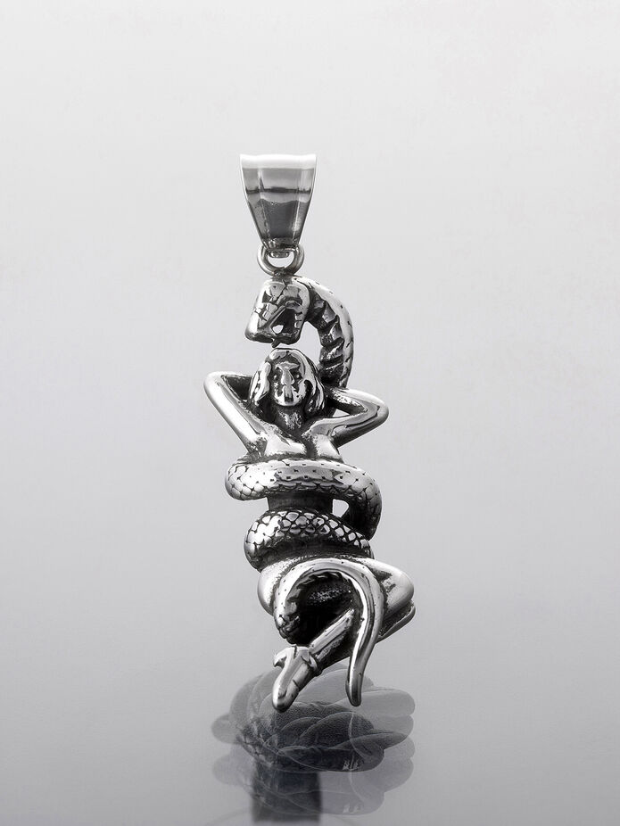 Zajímavý přívěsek ve tvaru hada, obtáčejícího ženu.