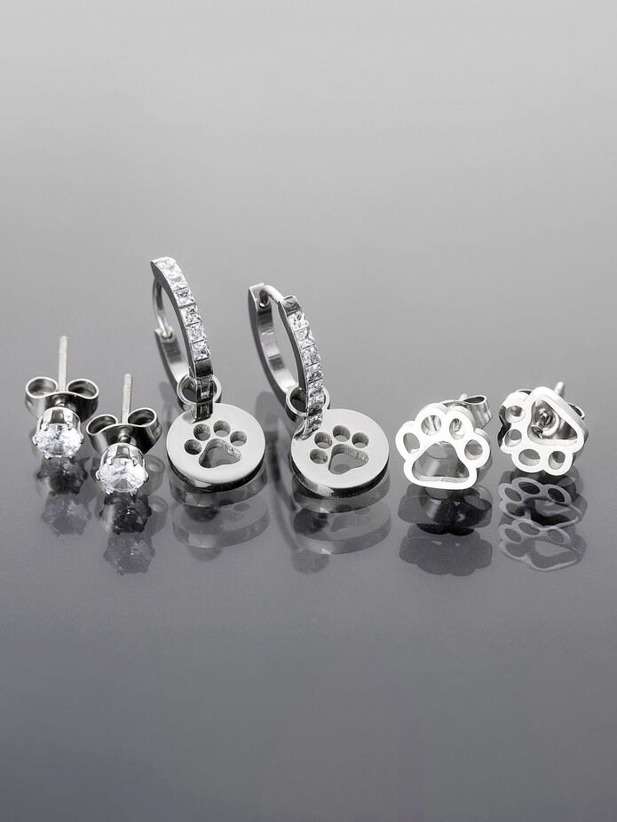 Velikosti kroužků náušnic je Ø 1,4 cm. Dva páry pecky, jeden pár kroužek s přívěskem.
