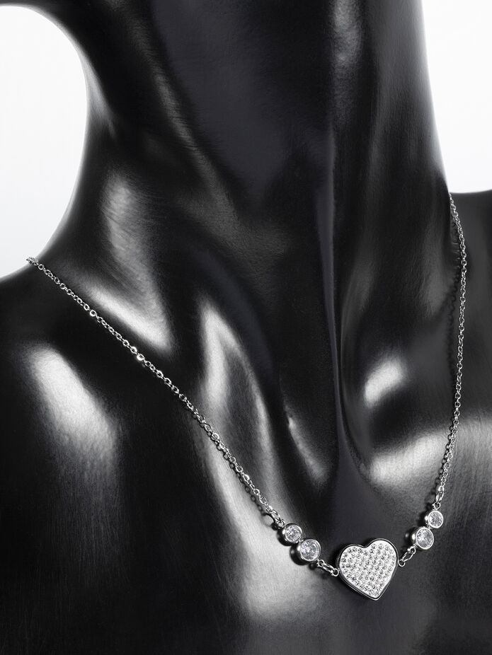 Třpytivý náhrdelník z leštěné chirurgické oceli s nádherným přívěškem ve tvaru srdíčka a čtyřmi drobnými kamínky na řetízku. Je skvělým doplňkem k jakémukoliv outfitu. Udělejte si i vy radost tímto překrásným doplňkem!