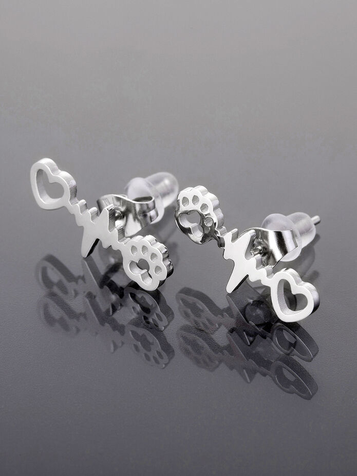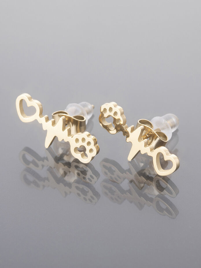 Vtipné náušnice vyrobené z chirurgické oceli. Jsou zpracovány do tvaru tepové křivky se srdíčkem a packou, barva stříbrná a zlatá. Zpracování působí opravdu moderně, jemně, vkusně a nadčasově. Náušnice jsou vhodné zejména na běžné nošení, ale i na výjimečné příležitosti.