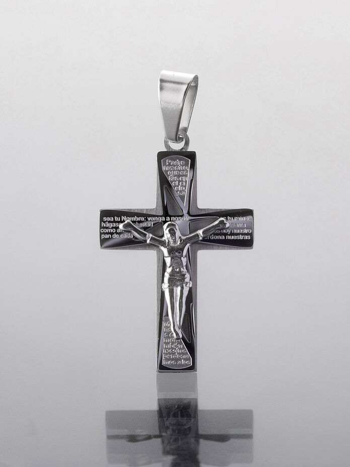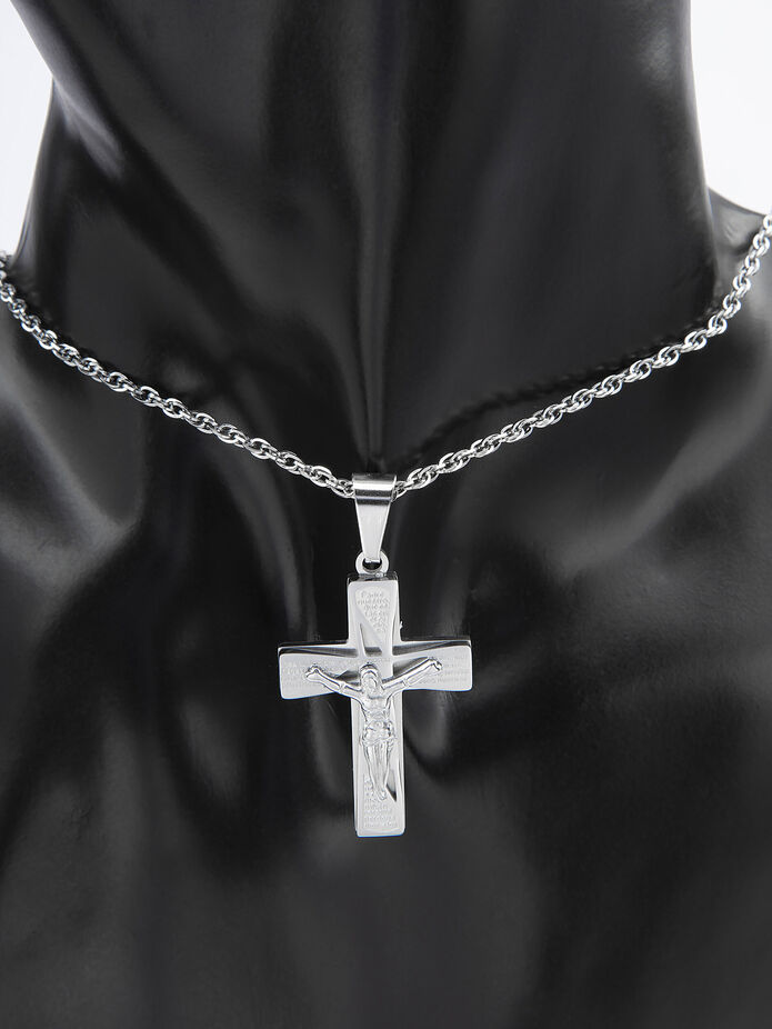 Výrazný přívěsek z chirurgické oceli s detailně zpracovaným motivem ukřižovaného Ježíše.