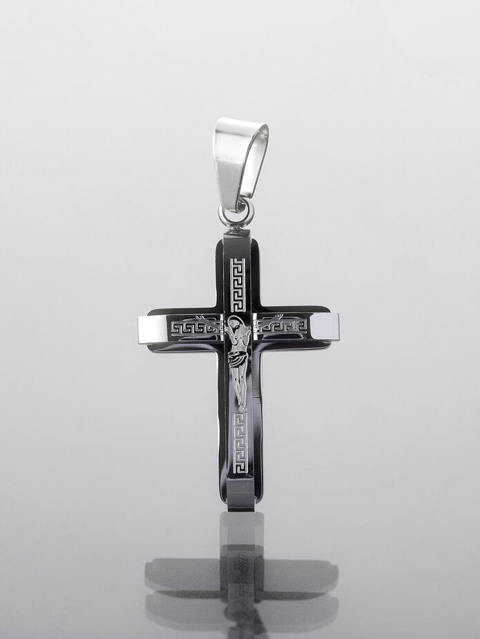 Výrazný přívěsek z chirurgické oceli s detailně zpracovaným motivem ukřižovaného Ježíše.